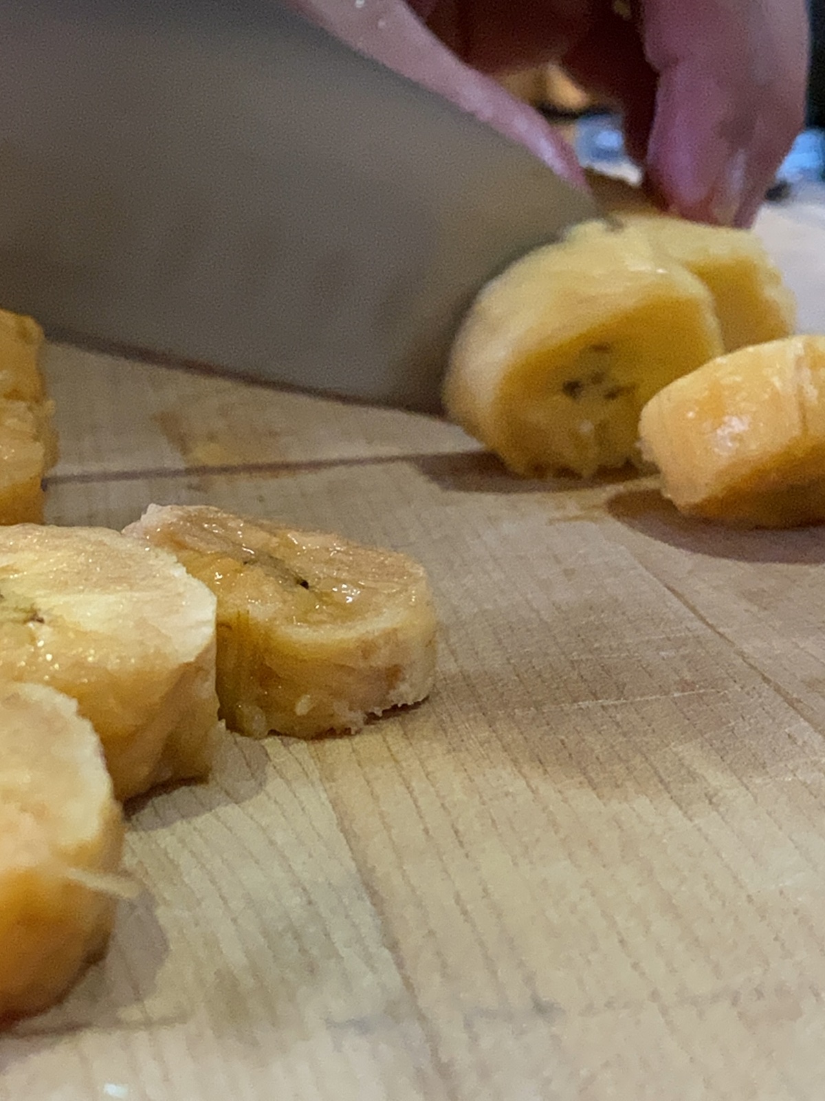 Majar bien con las manos los maduritos, para asegurarnos que toda la pieza está uniformemente suave.